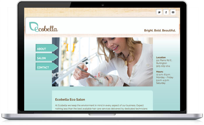 Ecobella is a ficticious, environmentally conscious hair salon in Burlington Ontario. I imagined that the salon would cater to an older crowd who need some quiet time to themselves.